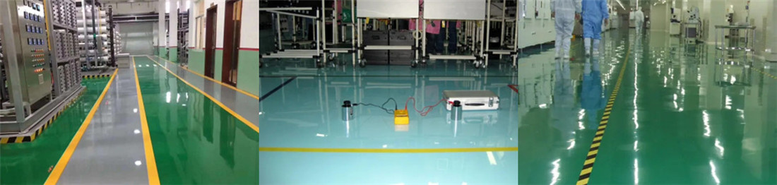 *   **环氧防静电自流平地坪**:面层采用镘刀刮涂,自动流平。表面**极度平整、光滑、光亮如镜**,洁净度最高,耐磨性更好。适用于对洁净度要求极高的电子、医药厂房。